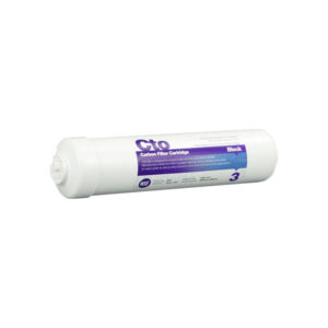 Filtre Inline CTO à charbon actif standard, utilisé dans les systèmes compacts d’osmose inverse. Connecté avec raccord 1/4″ Jaco.